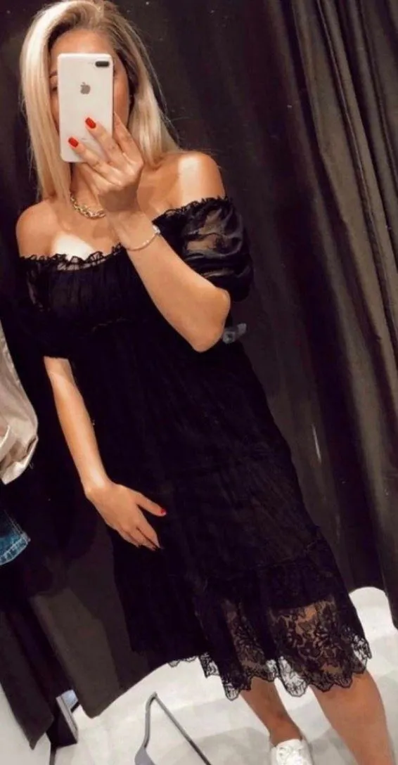 Style #: 2712 805 800 Zara semi sheer black dress in size medium Featuring a wide neckline, short... Show more