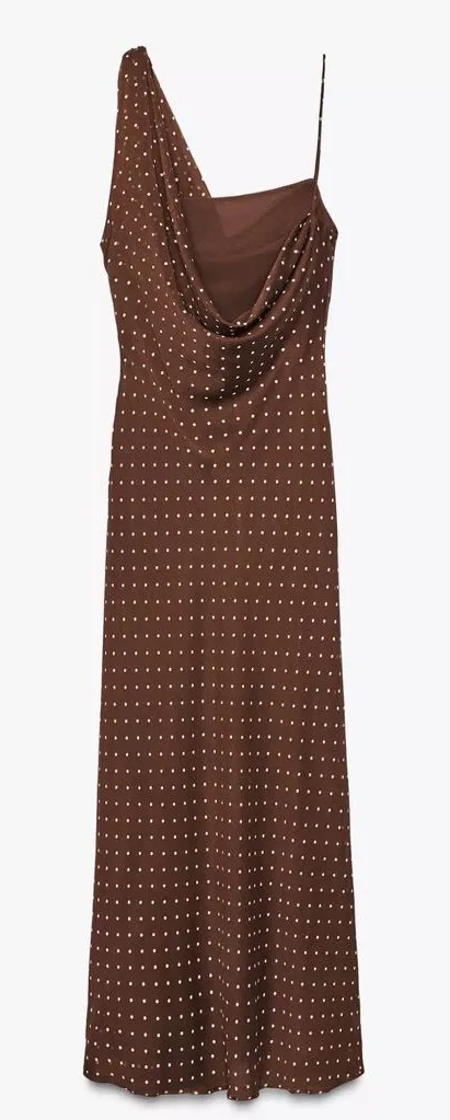 Zara NWT brown polka dot asymmetrical cowl draped detail midi maxi dress Size M - $120 New With Tags - From gina