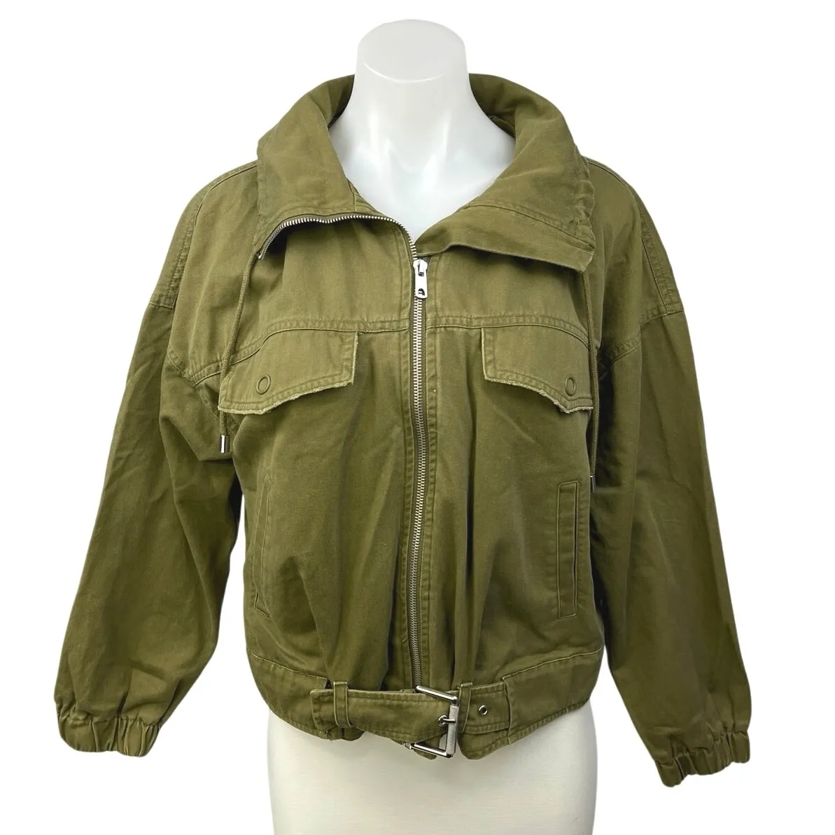 Zara Olive Green Denim Zip Up Collared Long Sleeve Military Outdoor Jacket Coat Size XS Size: XS... Show more