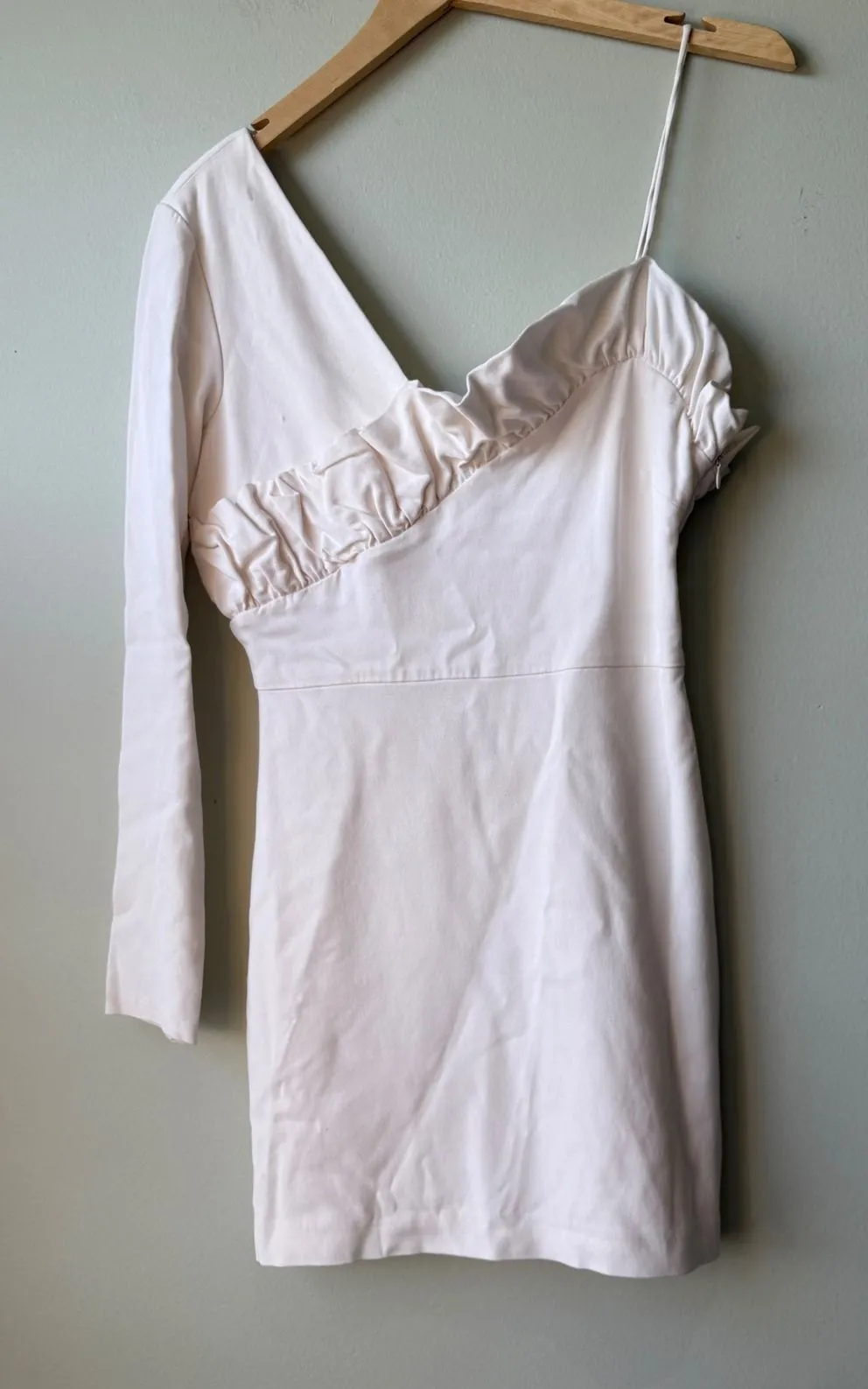 Keywords: Zara dress, one shoulder dress, mini dress, cream dress, long sleeve dress, party dress, cocktail dress, ruffle dress, bodycon dress, womens dress, Zara medium, Zara M, sexy dress, stylish dress, evening dress
