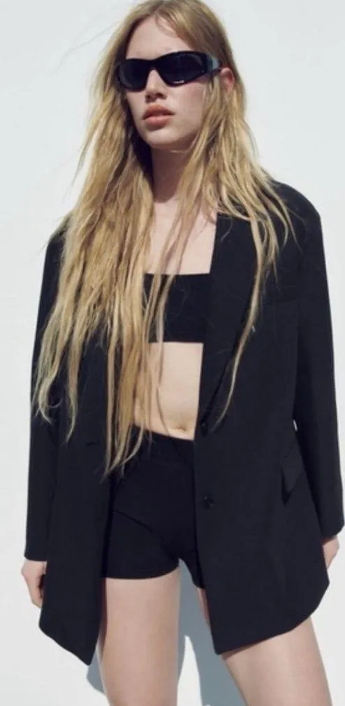 ZARA Oversized Relaxed Fit Blazer Jacket in Black Viral Blogger Fave Size XS/S Style 2010/787 This... Show more