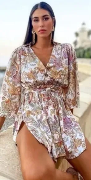Satin Paisley print V-neck with lapel Belt Side vents Excellent preowned condition ▫️Armpit to... Show more