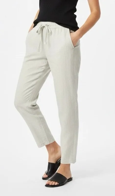90% cotton 10% linen Elastic waistband Drawstring waist Slant pockets Tapered leg Cropped Lightweigh... Show more
