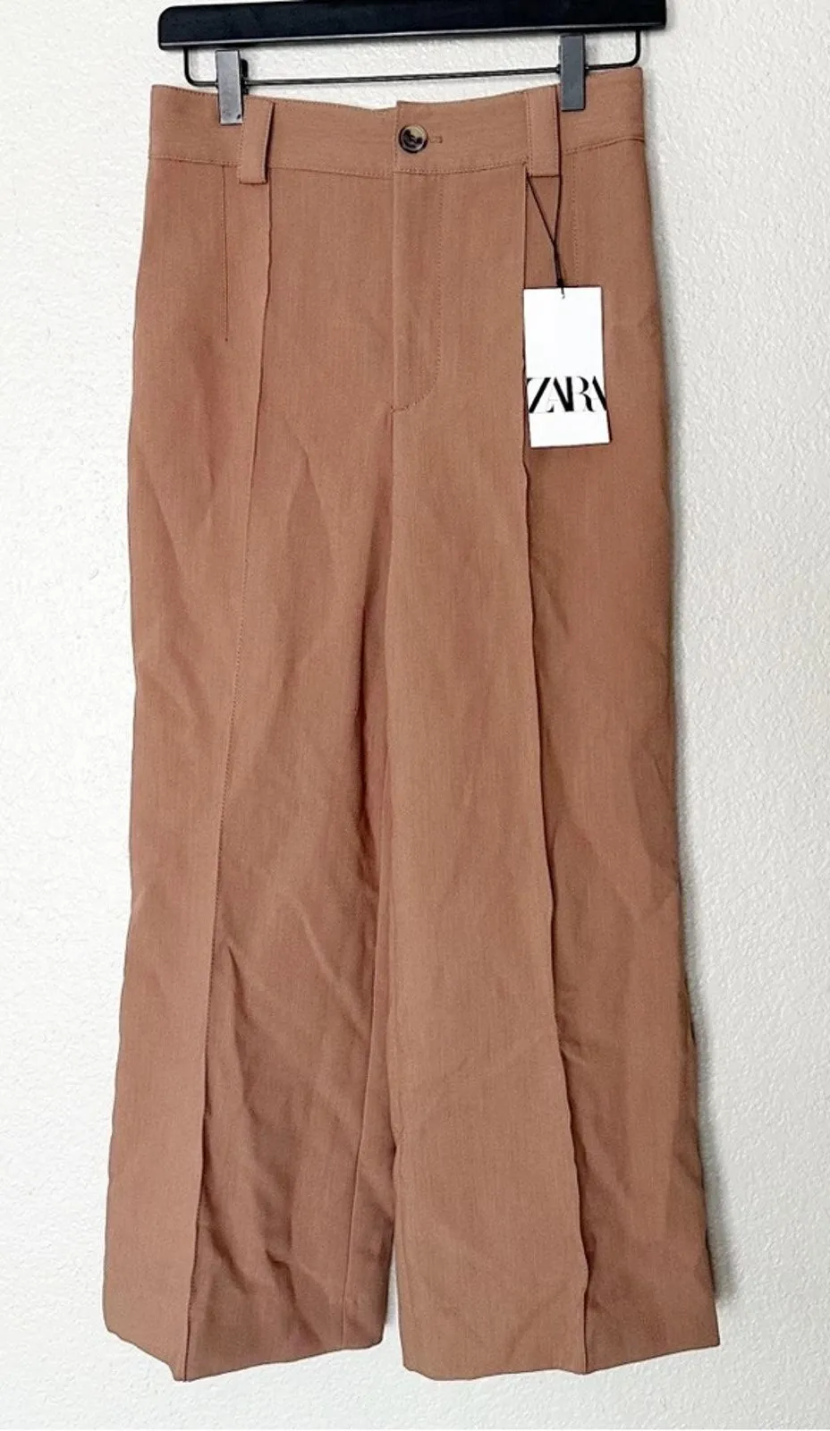 Viscose blend pants. Mid-rise and belt loops. Front zip and button closure. Size XS Measurements (... Show more