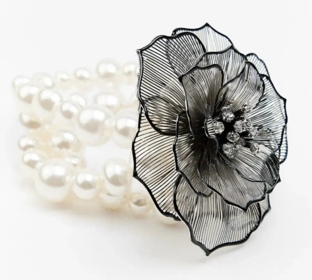 Zara Stretch Bracelet Pearlescent beads 3 layers Black flower Minor wear of beads from sto... Show more