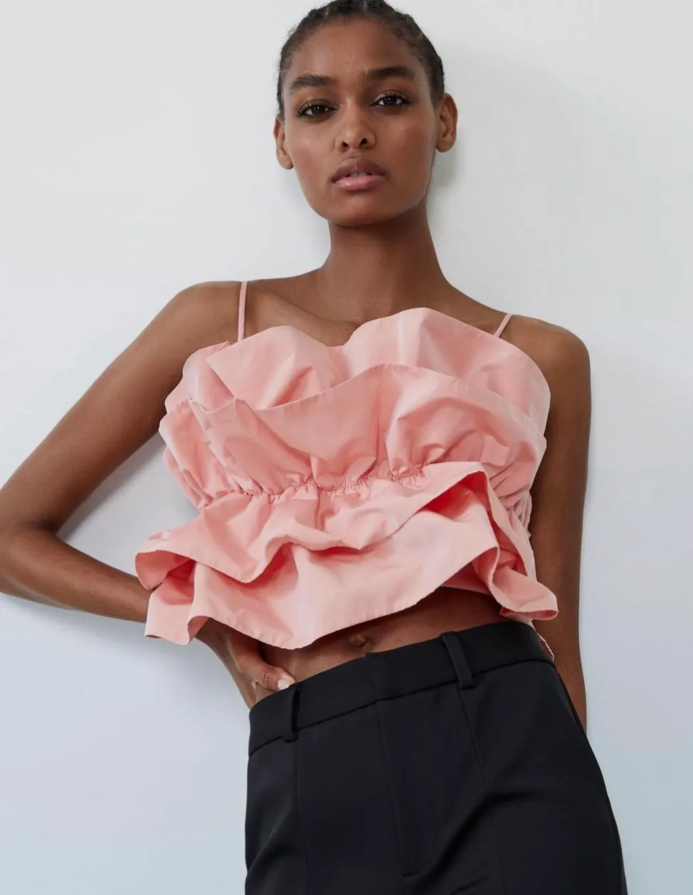 Pink Zara ruffle top in great condition. Super flattering and great for date night with jeans and he... Show more
