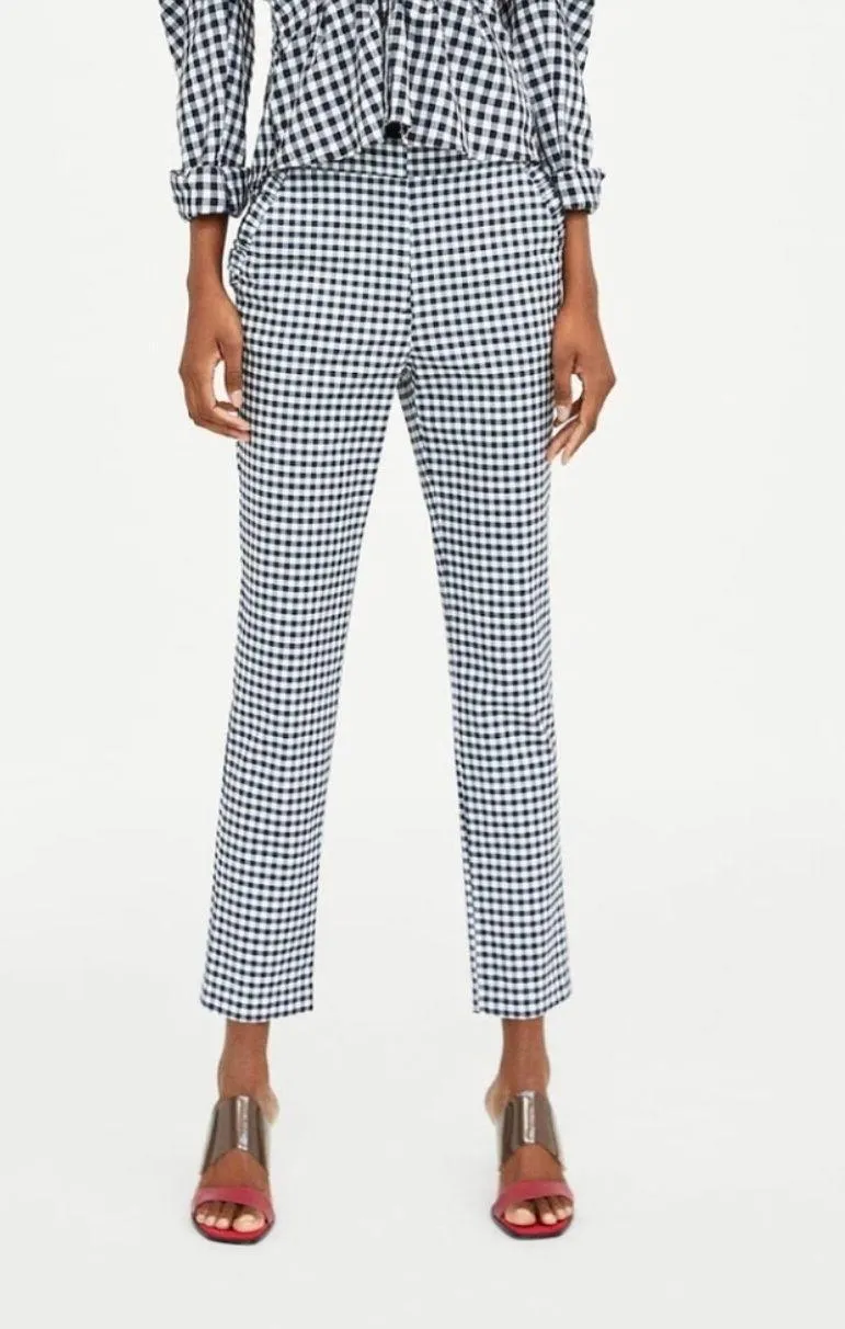 Zara Plaid Gingham Check Ruffle Pants Black White Medium. Cotton and elastane. Ruffle detail on po... Show more