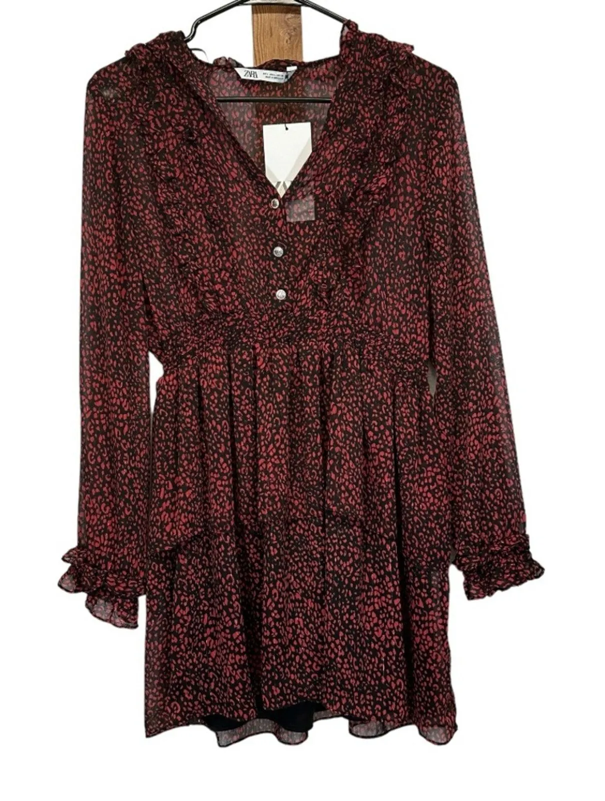 Zara Red & Black Cheetah Print Long Sleeve Ruffled Mini Dress Long sleeves V neckline with three but... Show more