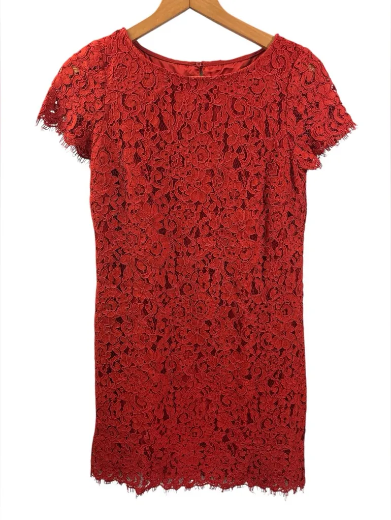 Zara Red Lace Dress Short Sleeve Lined Sheath Sz XS Cocktail Business Valentine - $24 - From J
