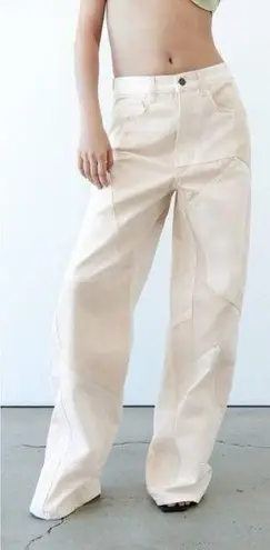 Zara Relaxed Fit Patchwork Jeans WIDE LEG WHITE/BEIGE Size 0 NEW White - $71 New With Tags - From Julie