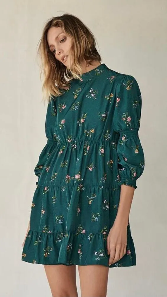 ZARA Retro Vintage Deep Emerald Green Floral Print Mini Dress size XS. Like new. No flaws. Chinese... Show more