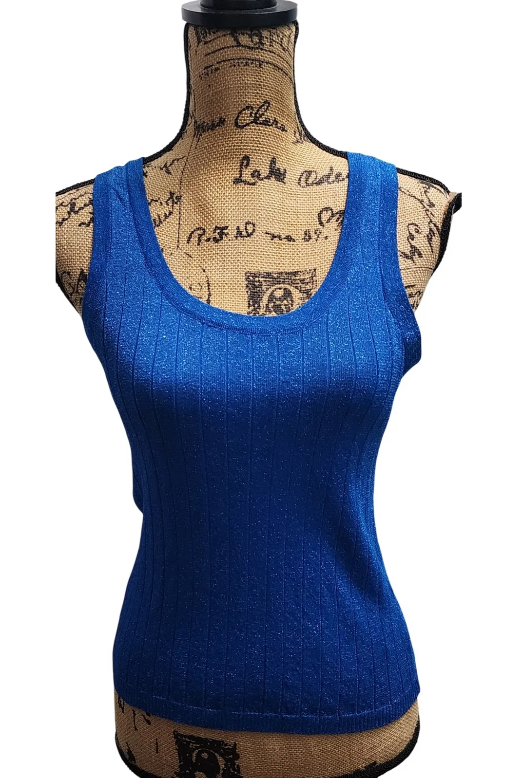 A royal blue sparkle knit tank top by ZARA. This sleeveless top offers a subtle shimmer throughout,... Show more