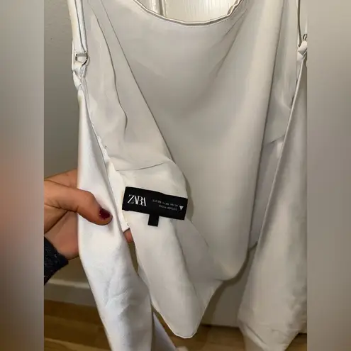 Top with straight neckline and adjustable spaghetti straps. Open back with self bow. White Size: XS... Show more