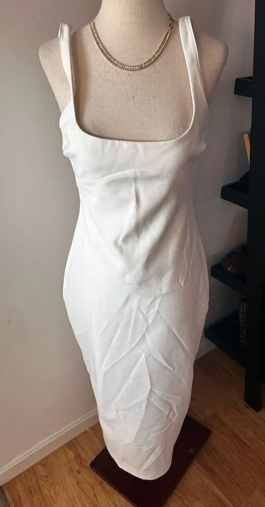 Zara sexy white long dress size medium stretch with cutout on the back Will need a wash and ironin... Show more