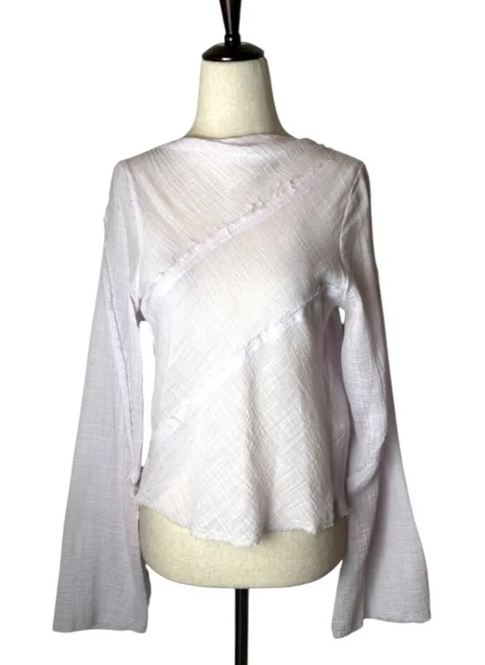 Zara Shirt Women XS Purple Lilac Sheer Raw Seam Detail Tie Neck Open Back Top