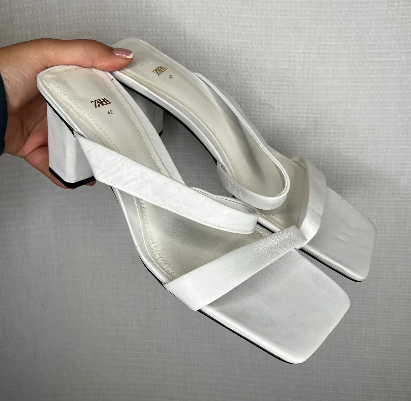 Sleek heeled mules from Zara, an effortlessly chic and minimalist design statement. The shoe also fe... Show more