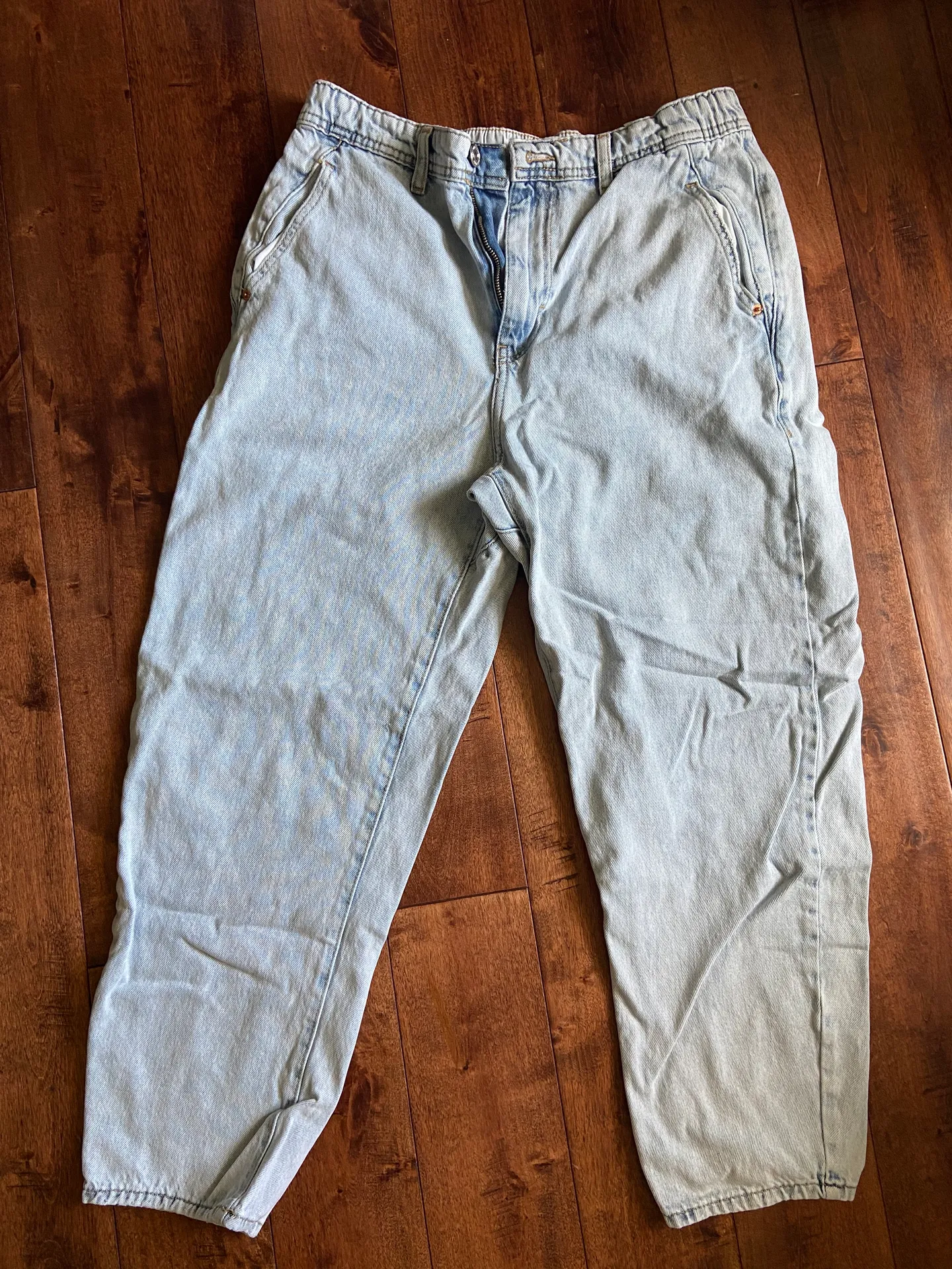 These are a relaxed/baggy style. A lightweight jean with a straight fit through the leg. Just too bi... Show more