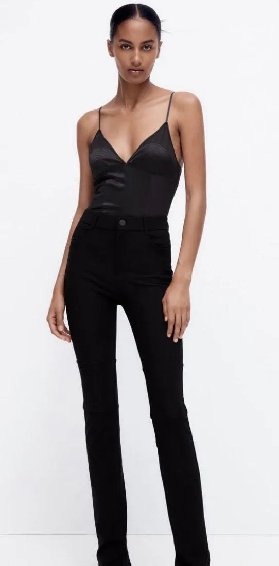 NWT!! Black Zara Highwaisted leggings with false front pockets. Slit Flared Legs