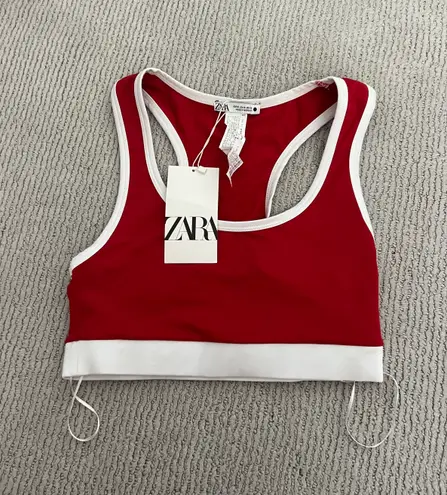Zara Sports Bra Red White Trim Tank Crop Top Activewear Nylon Size small NWT