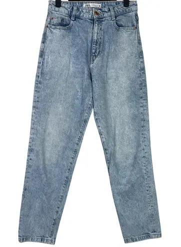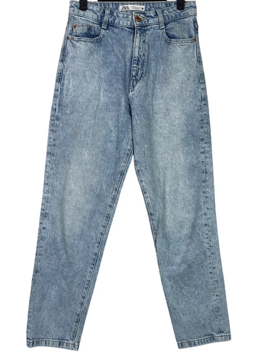 Zara Straight Wide Leg High Rise Ankle Crop Casual Denim Jean 4 Stretch Light Blue Wash Excellent p... Show more