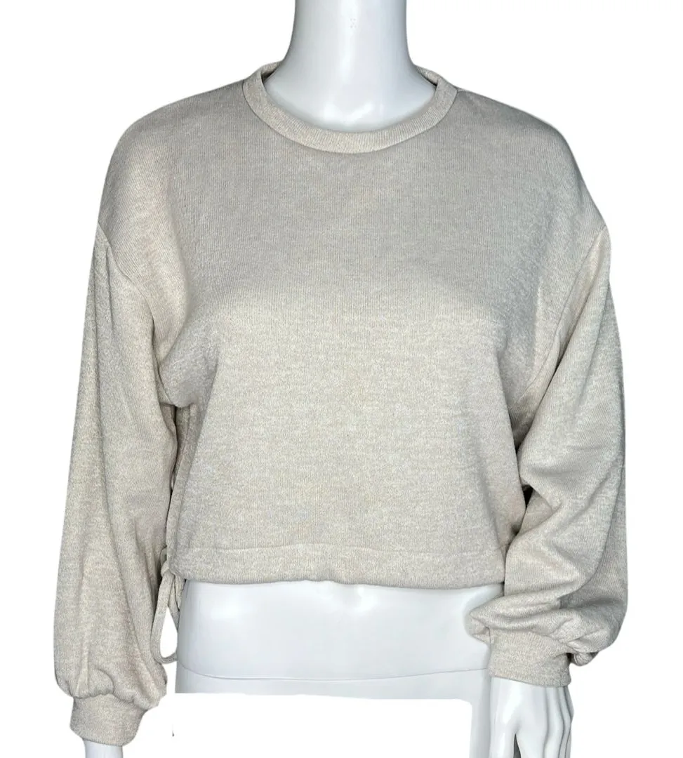 Zara Sweater Womens Small Beige Cropped Drop Shoulder Cozy Comfy Casual Lounge Women's Size Small... Show more