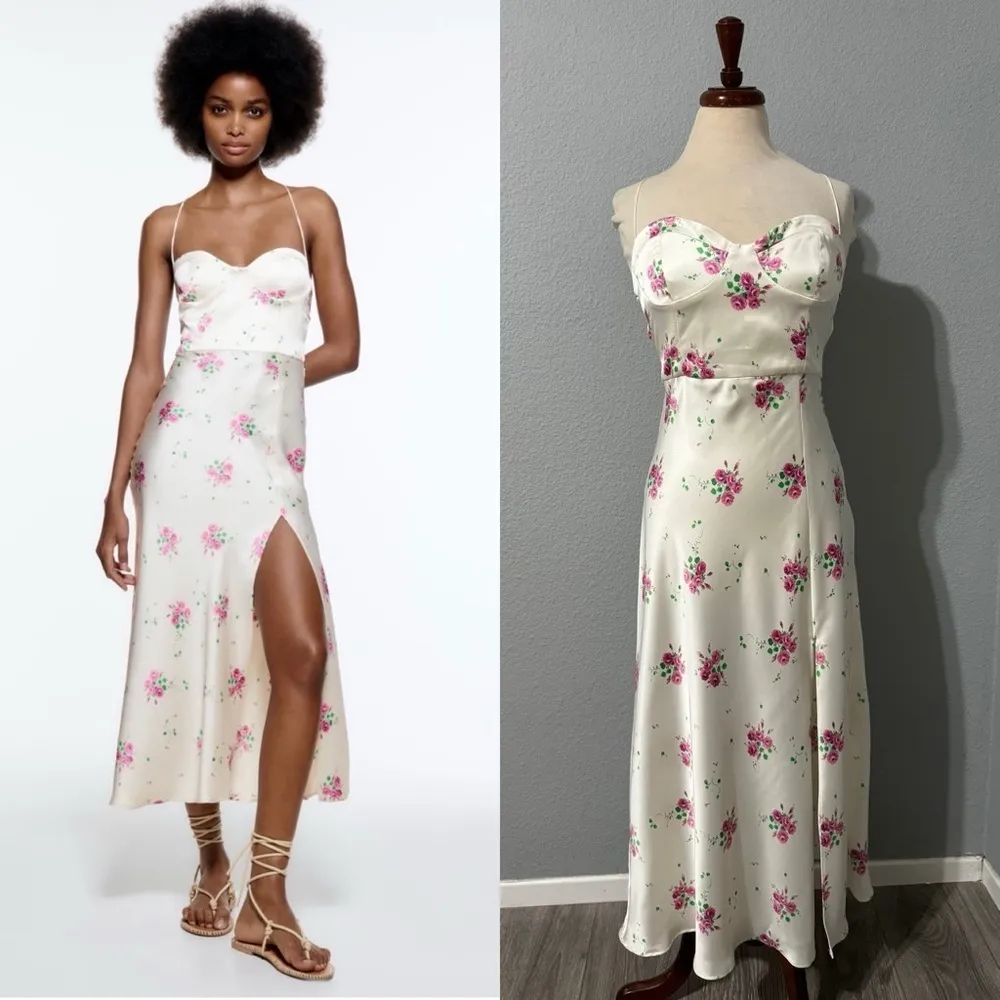 Zara New with tags Size Large Color: Pink White Gorgeous Zara Sweetheart Neckline Floral Print S... Show more