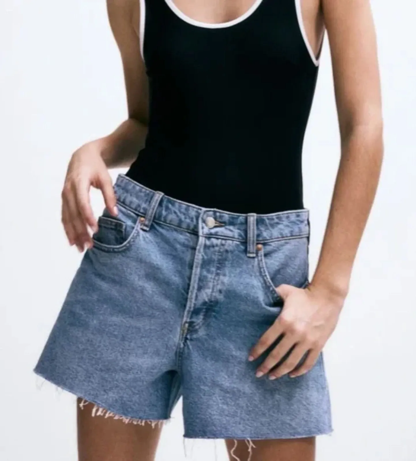 ZARA The 90s Denim Short Light Wash Sz 2 Light wash blue denim shorts Raw hems Relaxed fit, high wai... Show more