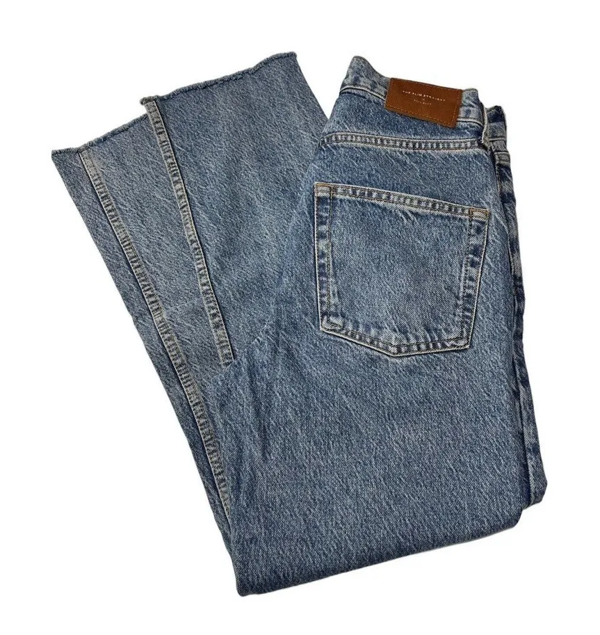 Zara the slim straight women’s denim jeans in bave blue Size 4 , inseam 27”, waist 28” approximatel... Show more