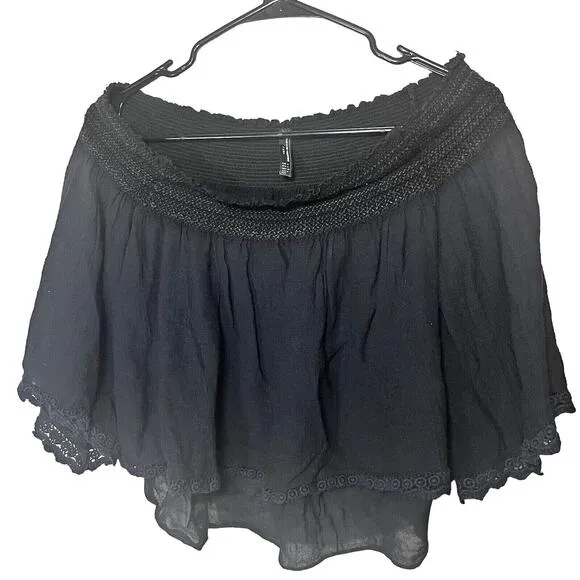 Zara Trafaluc Black Crop Top Blouse Eyelet Lace Trim Gauze Off Shoulder Sz L Gently used condition... Show more