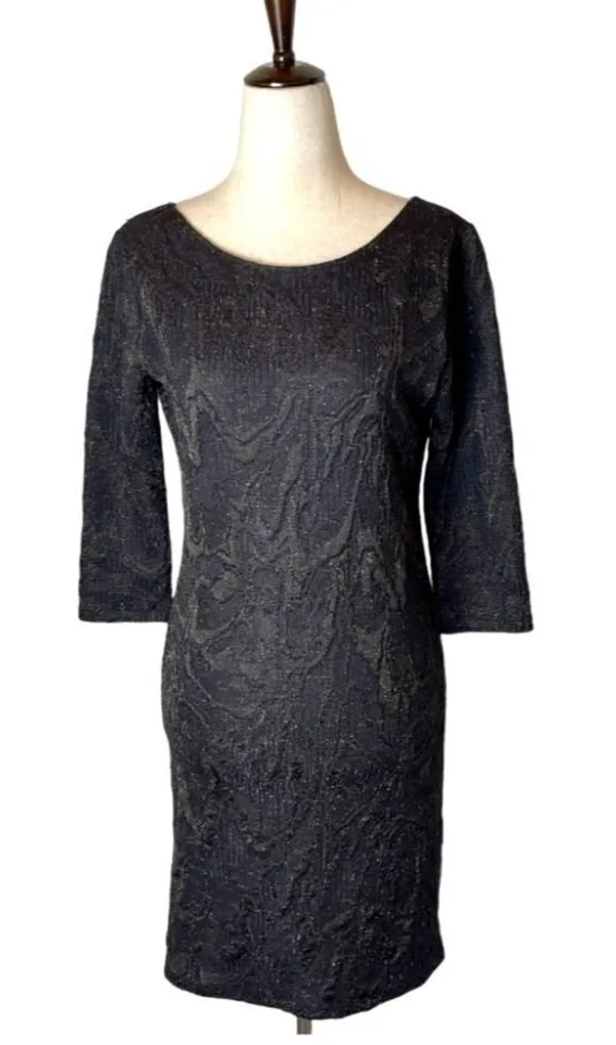 This dress by Zara Trafaluc is in excellent condition. It is in an allover black color with shimmeri... Show more