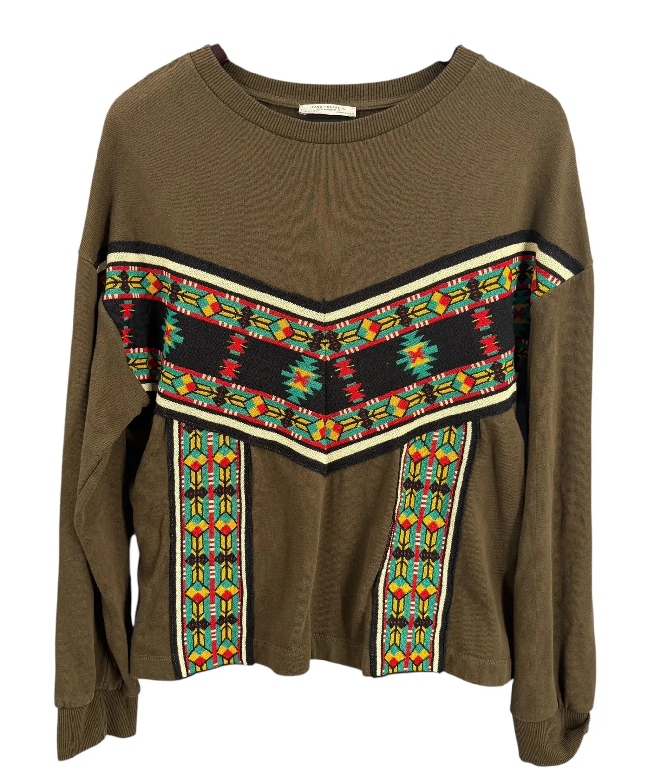 Zara Trafaluc Brown Aztec Print Sweatshirt – Size S A soft, 100% cotton sweatshirt featuring vibran... Show more