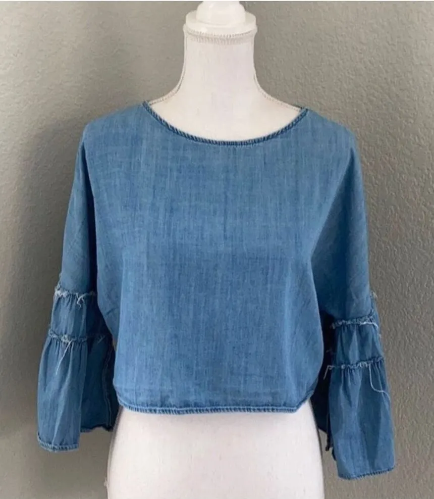 VGUC. Zara Trafaluc Denimwear Top. Bell sleeves. Lightweight denim top. Size XS 532