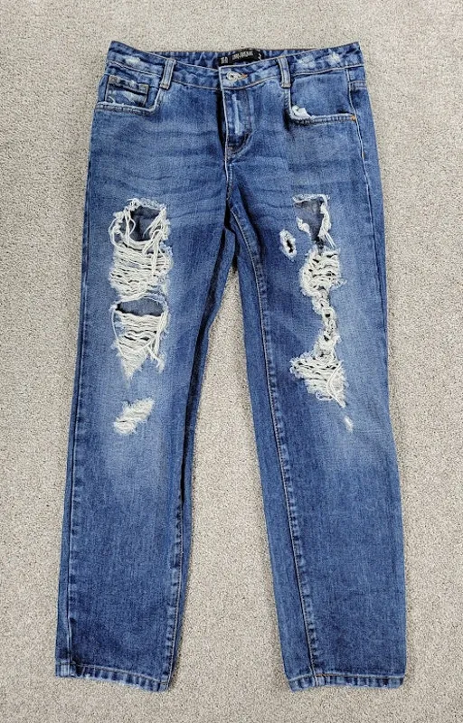 Zara Denim Jeans Women 36 Blue Distressed Ripped Slim Straight Mid Wash Pants Measurements: 14" wai... Show more