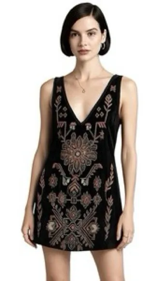 Stunning Zara velvet embroidered mini dress in size XS — NWOT. This black dress features beautiful,... Show more