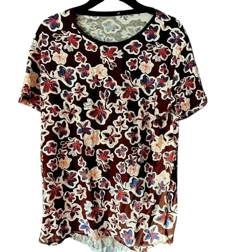 Make a statement with this eye-catching floral print t-shirt featuring a beautiful brown background... Show more
