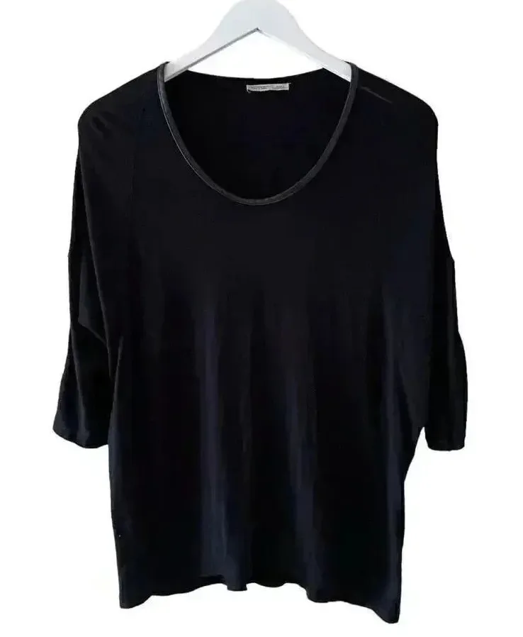 Zara W/B Collection Womans Top 3/4 Sleeve Black Loose Fit Faux Leather Trim Sz S #1704 pre-owned con... Show more
