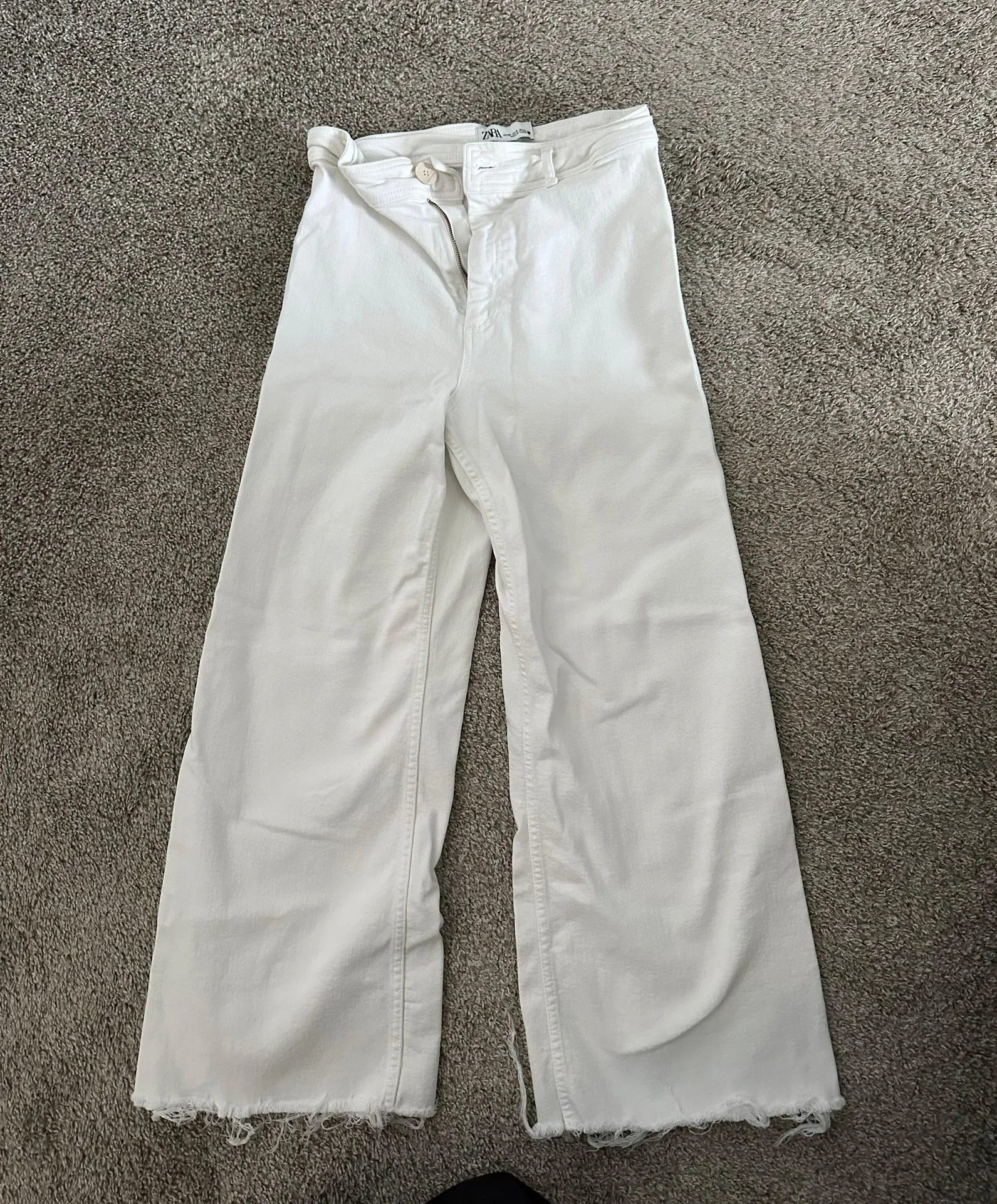 White flared jeans with frayed bottoms. Tag is ripped but in great condition otherwise