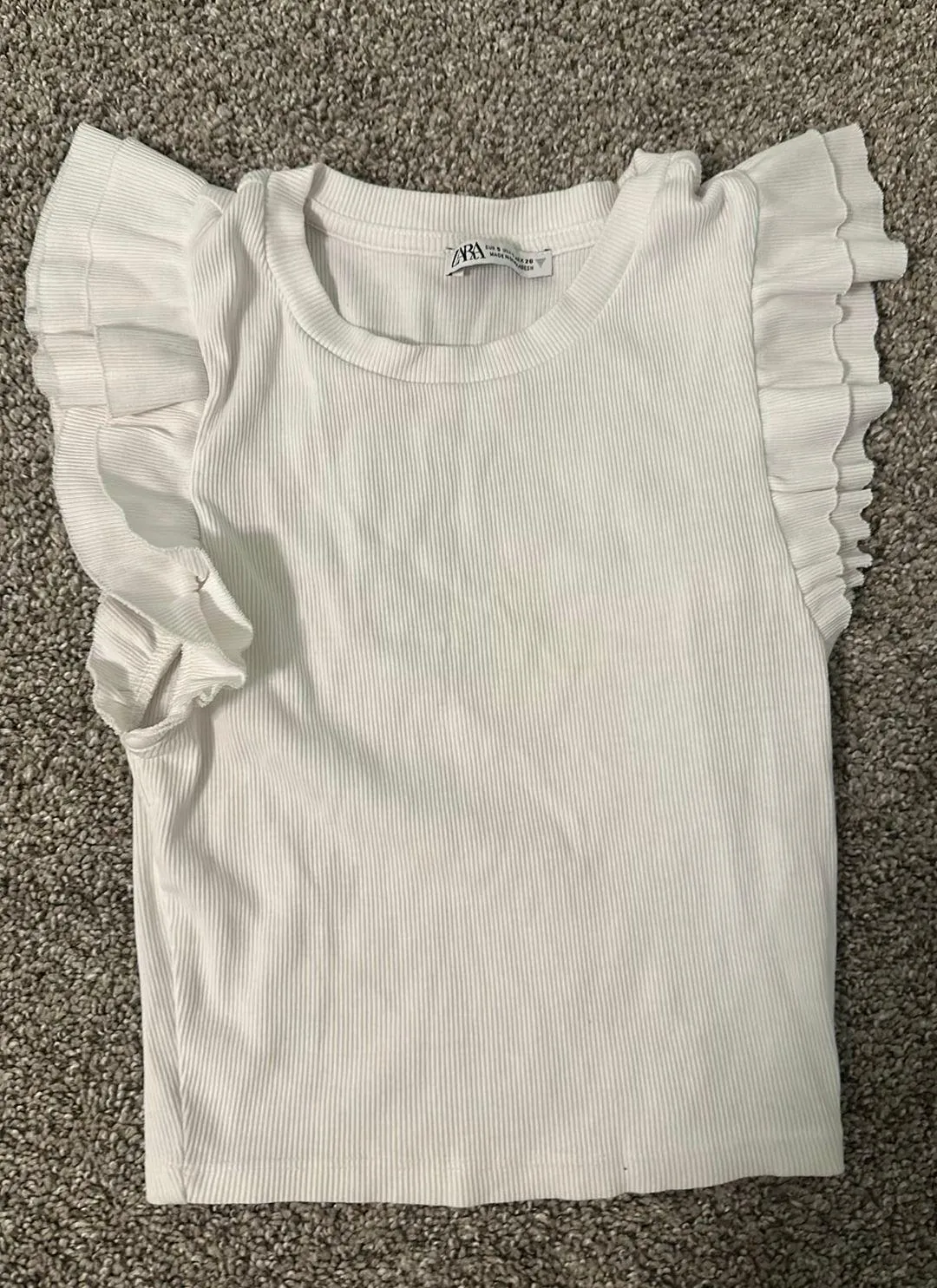 Worn once white ruffle shirt size small mid stomach length