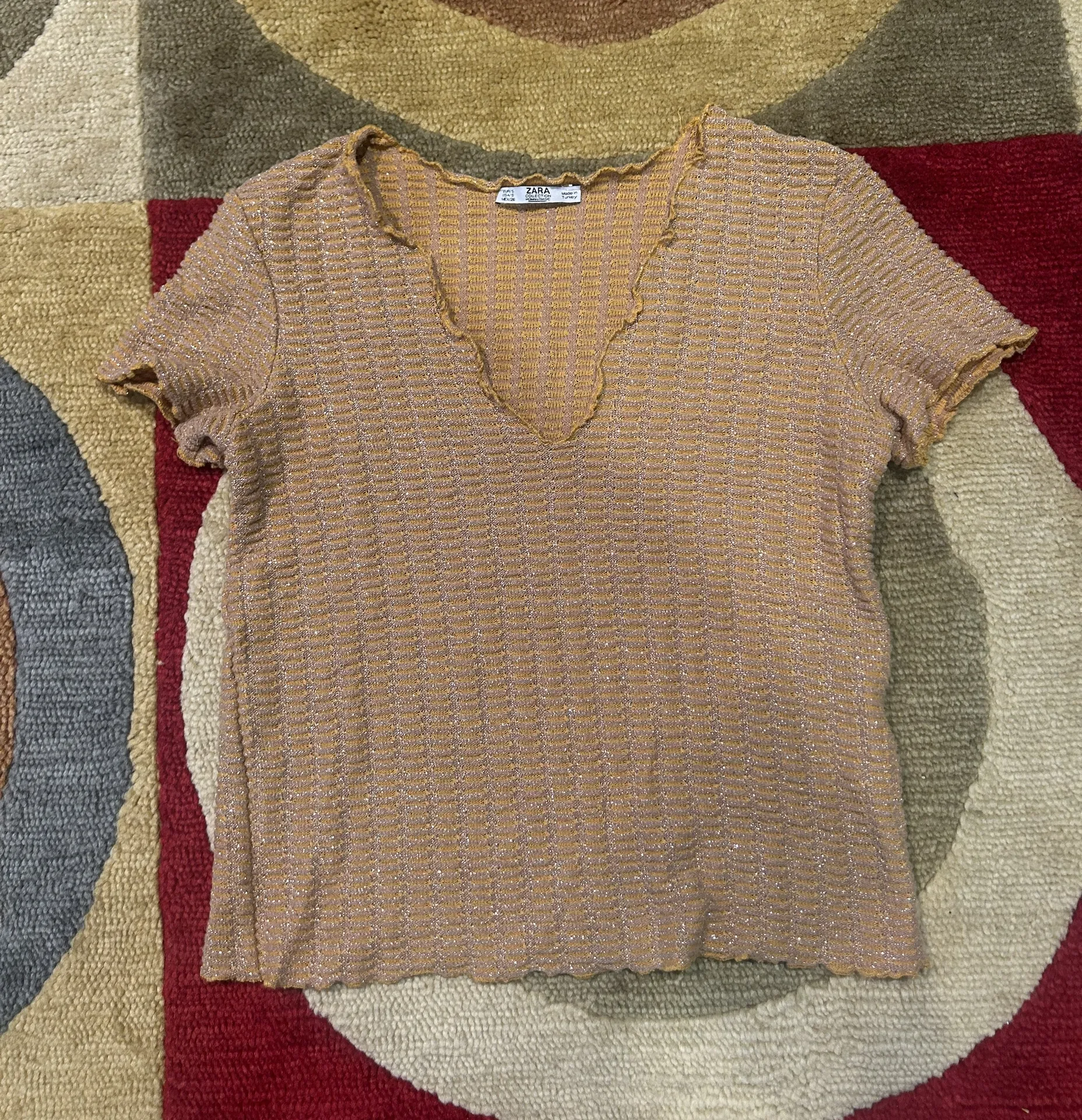 Zara Women Mustard Yellow Metallic Lettuce Edge V Neck Short Sleeve Crop Top Small Great Conditio... Show more