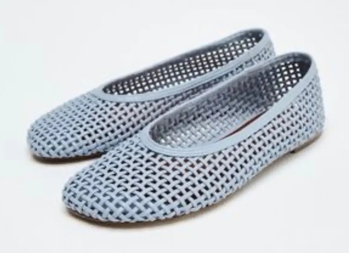 ZARA women's periwinkle woven ballet flats. These slip-on shoes feature a chic perforated design acr... Show more