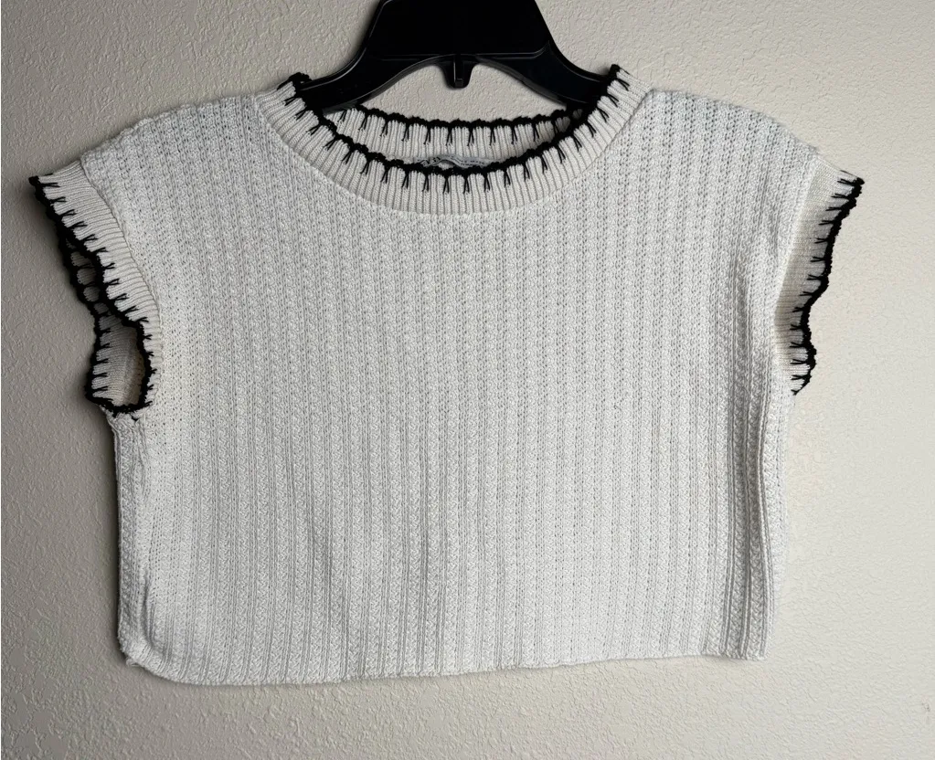 Zara Women Size Small Ivory Knit Crop Short Sleeves girly shirt in great pre owned conditions see p... Show more