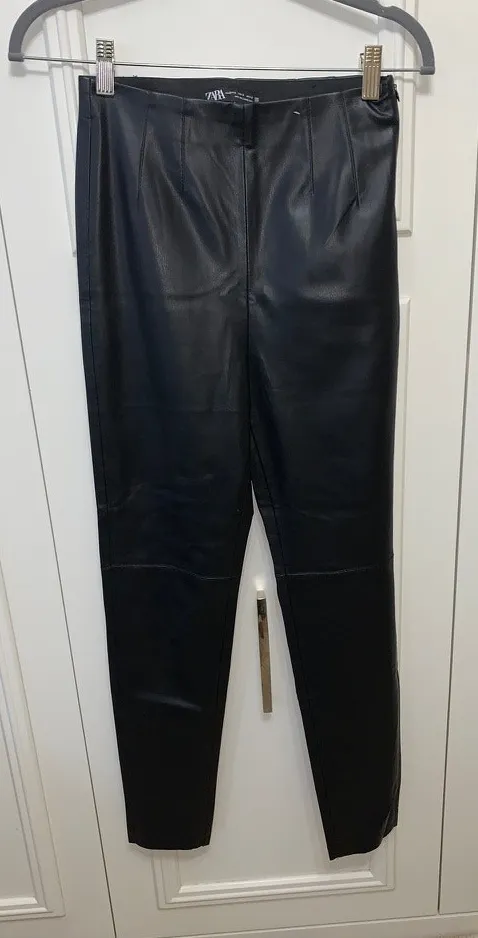 Brand, Zara, Size, S, Size Type, Regular, Style, Dress Pants, Color, Black, Department, Women, Type, Pants, Material, Faux leather, Features, Stylish, Comfortable fit, Closure, Zip, Pattern, Solid, Occasion, Casual, Country/Region of Manufacture, Cambodia, Fit, Regular, Condition, Pre-owned