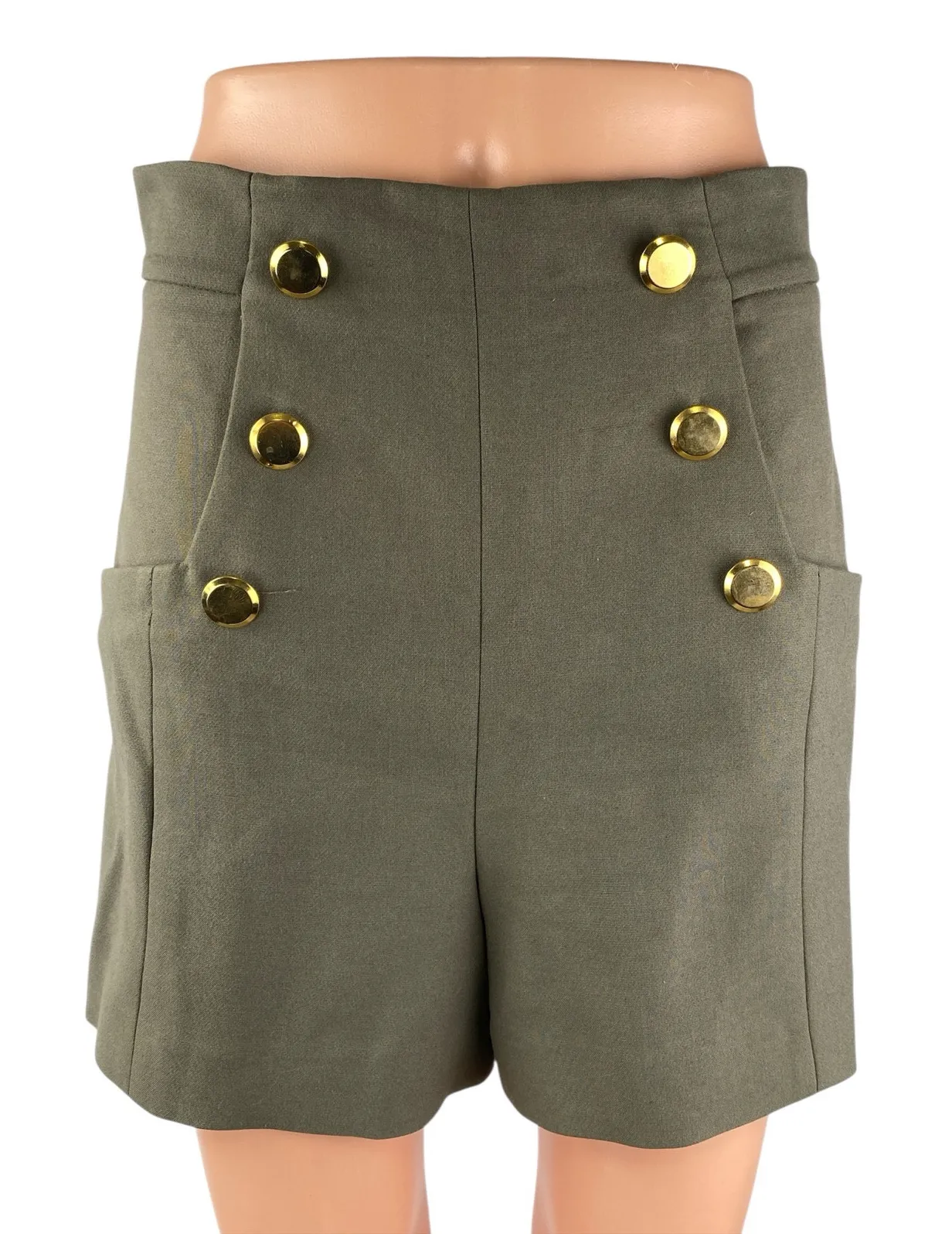Zara Women's Green High Waisted Gold Buttons Casual Wide Leg Sailor Shorts Size M Size: M Condition... Show more