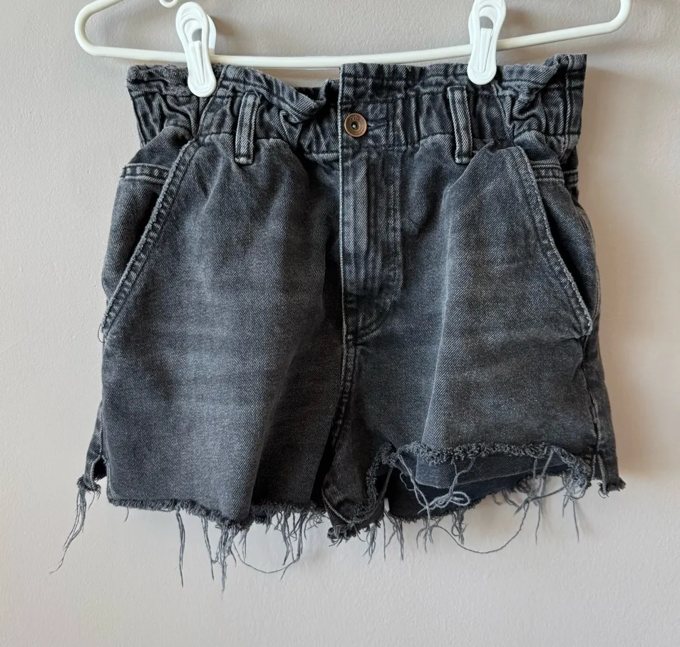 Zara Women’s‎ High Rise Charcoal Gray Black Denim Distressed Jean Shorts - Size 6 - high rise - pap... Show more