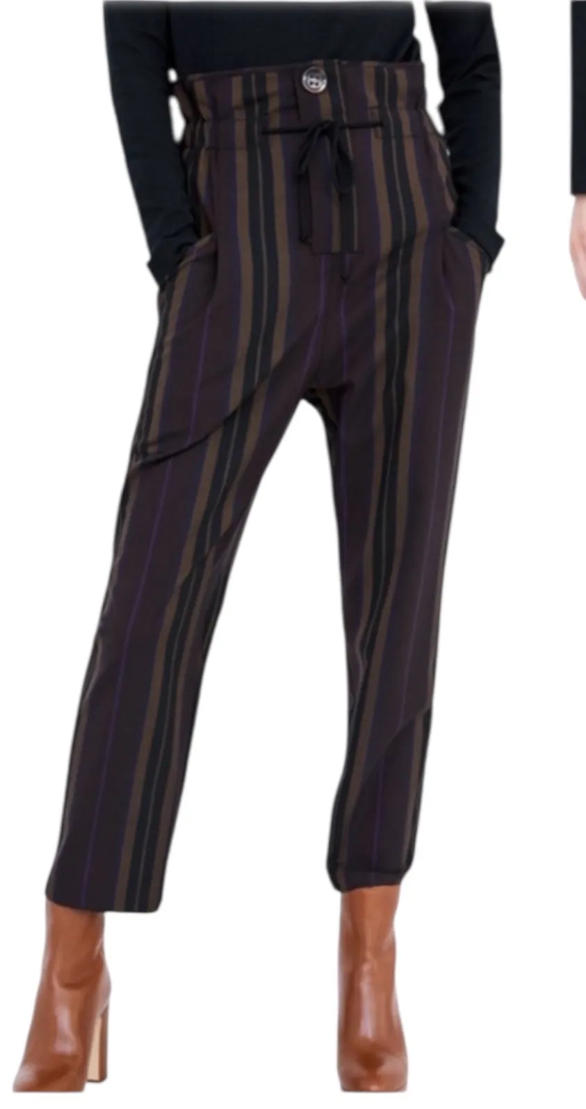 ZARA Women's Paperbag Waist Striped Cropped Trouser Pants in Brown. Size XS. 67% poly, 27% viscose,... Show more