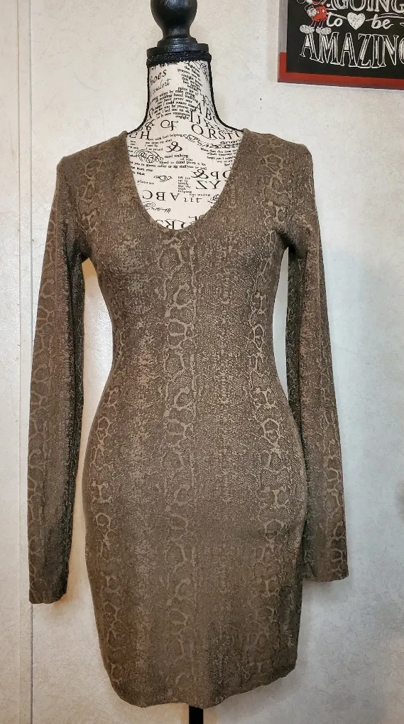 Chic and trendy Zara bodycon dress featuring an allover snake print design. Long sleeves with a flat... Show more