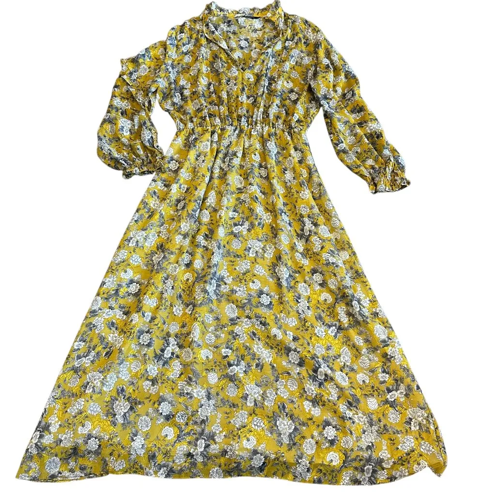 Zara Size medium women's US Yellow dress with pretty white and grey floral print Long sleeve w... Show more