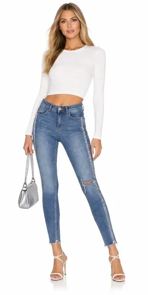 Zara Z1975 Denim Distressed Glitter Tuxedo Stripe Skinny Jeans - Jeans in good condition, faint on t... Show more
