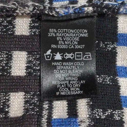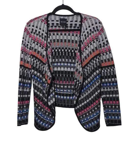 Nic+Zoe Multicolored Geometric Cardigan - Size PS (Petite Small) ▪️ Multicolored (black, white, gray, pink, and blue) geometric printed cardigan ▪️ Open front ▪️ Long sleeves ▪️ Good pre-owned condition ▪️ Measurements listed in photos Approximate measurements (taken laying flat): Armpit to Armpit: 16.75" Length: 21.75" Color: Black, white, grey, pink, and blue Materials: 55% cotton, 33% rayon, 6% viscose, 6% nylon Hand wash cold