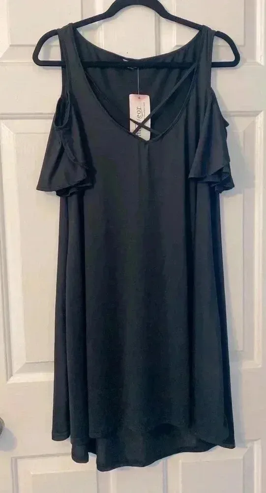 Stretchy Women’s‎ Black Cold Shoulder Criss Cross Straps Flowing Shirt XL to 1X - $24 New With Tags - From Gwen
